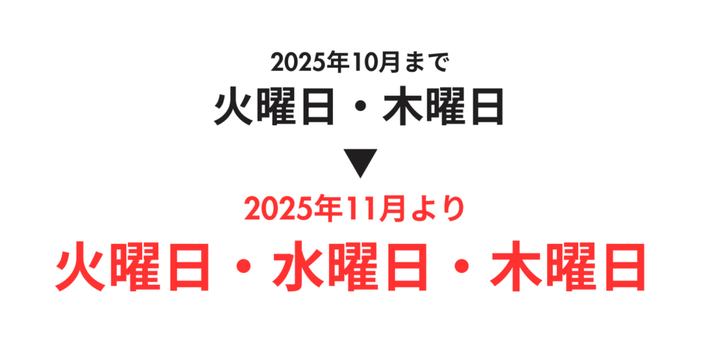 このたび、11月より定休日を以下に変更させていただくことになりました。