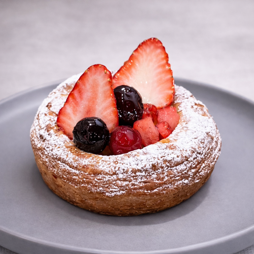 春をイメージした果物をデニッシュにトッピングした、少し華やかなデニッシュ